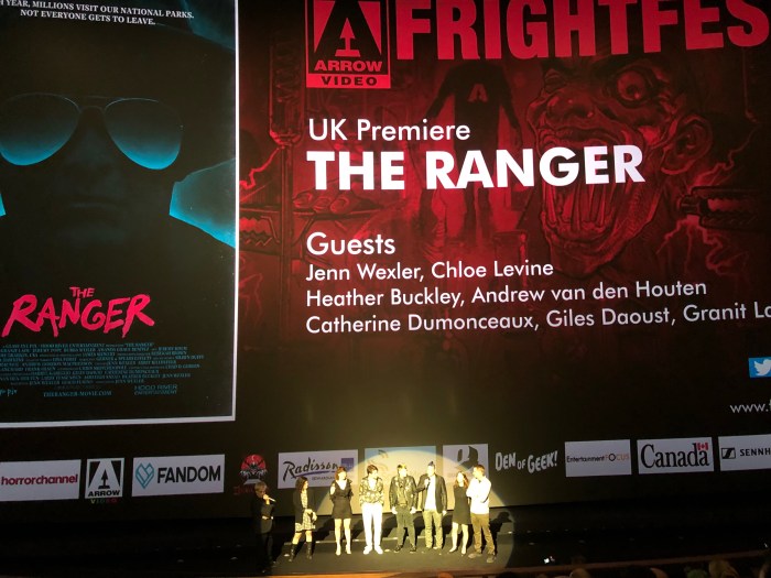 This was a good solid old-school slasher with a park ranger theme and a big dash of 80s punk references. Having seen producer Heather Buckley’s haircut and jacket, it’s clear why she’s a producer on this. The best aspects of this movie were the lead performance from Chloe Levine (best ‘panicked eyes’ of the fest), the period costume details, and of course the ranger-themed kills. Particularly the bear-trap. Loved that bear trap.