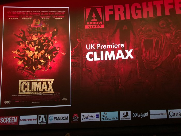 Then the lights go down and for the final time in the festival we are warned, sternly, that Climax is not the IMAX ™ experience. Climax begins.